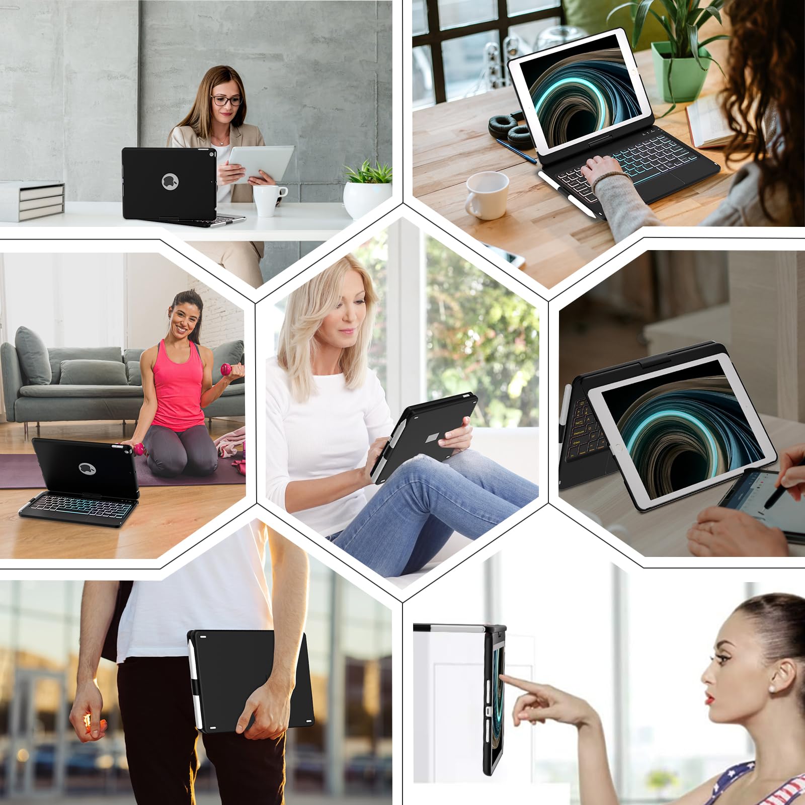 Clavier Avec Pavé Tactile Pour IPad 7e/8e/9e Génération - Rétroéclairage RGB 10 Couleurs, Rotatif 360° - Français AZERTY